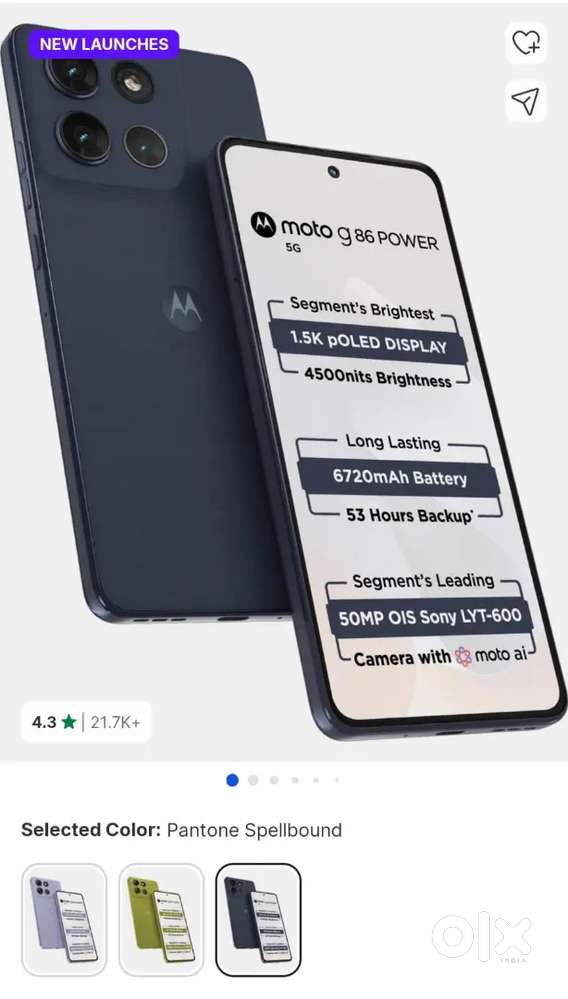 - ₹ 12,500Motorola 86power 5g Mob only 2 months old with 6000mh power batteryGiani Zail Singh Nagar, Rupnagar15 Dec