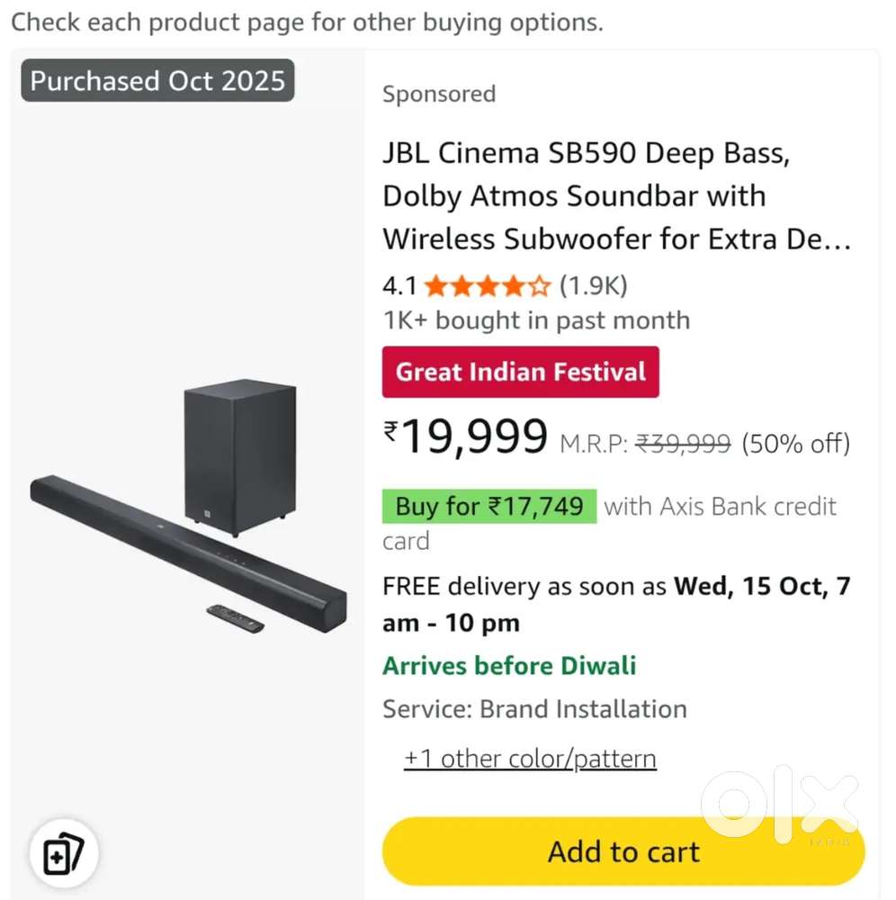 - ₹ 19,000JBL 590 SOUNDBARLIG Colony, IndoreToday