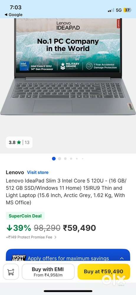 - ₹ 40,000Lenovo ideapad slim 3intel core 5 seal packSector 107, NoidaToday