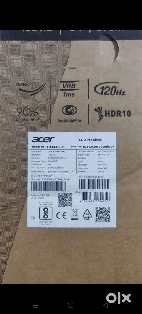 - ₹ 17,000ACER CURVED GAMING MONITORAgat Nagar, ArakkonamToday