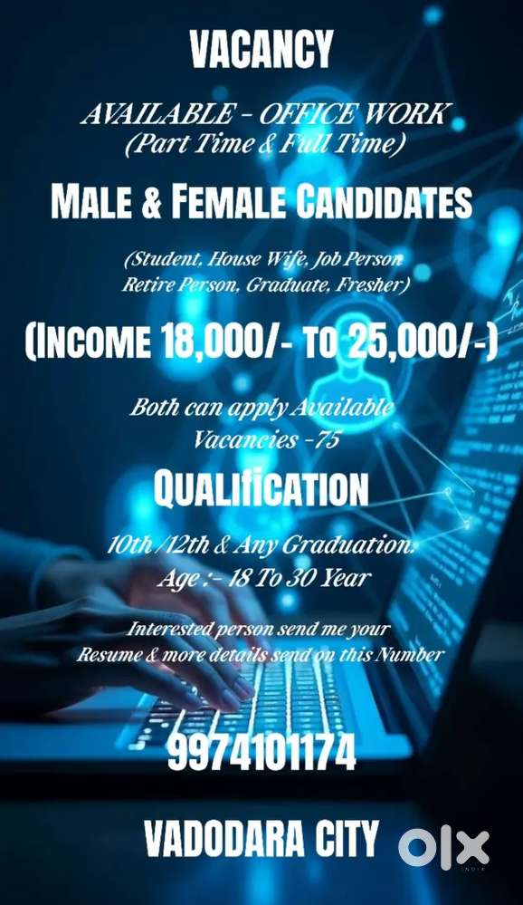- ₹ 15000 - 25000 | MonthlyOFFICE workAtladara, VadodaraToday