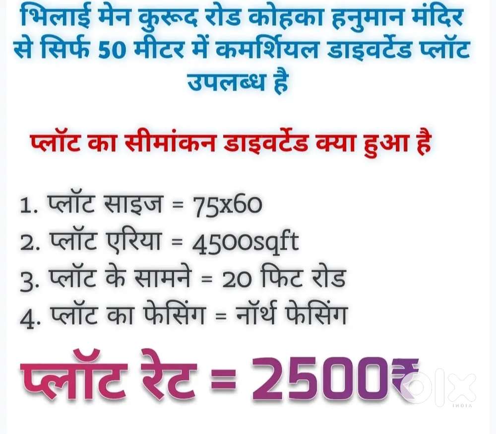 - ₹ 35,99,000YesterdaySemi Comercial Diverted Plots Available at near Junwani Road KohkaJunwani, Bhilai