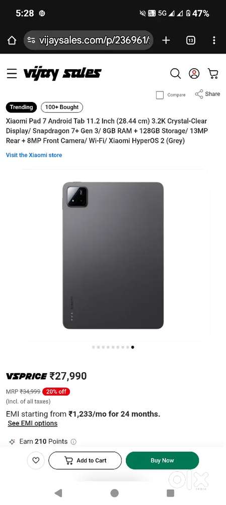 - ₹ 11,799Xiaomi (Mi) Pad 5 128gb storage and 6gb RAMManakkad, Thodupuzha4 days ago