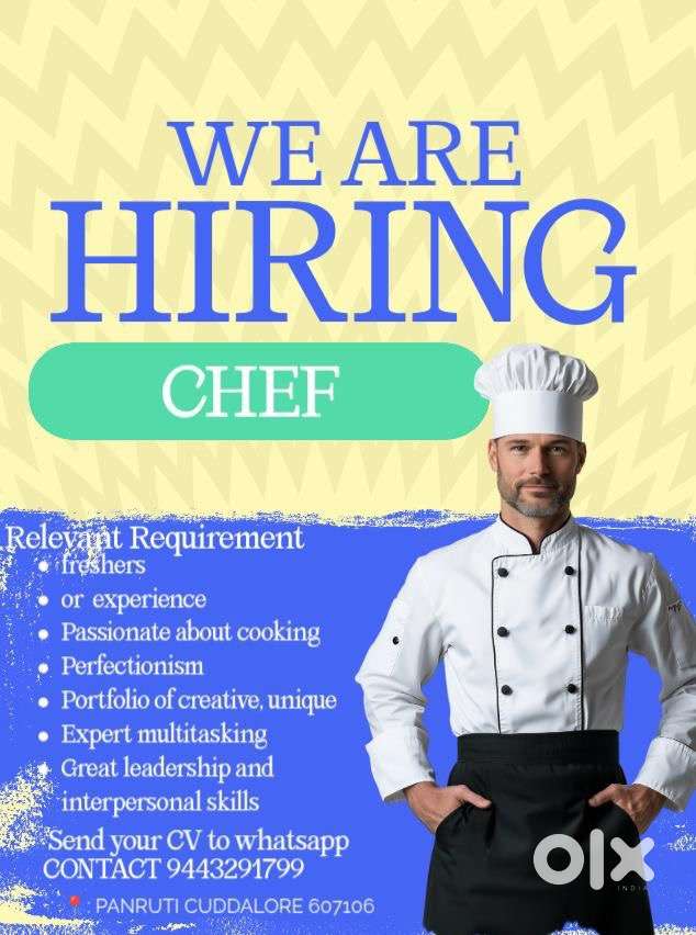 - ₹ 20000 - 25000 | MonthlyHey hai guys we are hiring chef cuddalore panrutiThattanchavadi, PanrutiToday