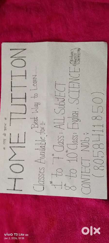 - ₹ 1000 - 1500 | HourlyI am a home tution teacher from 1 to 8Vaidehi Nagar, FaizabadToday