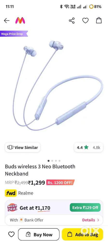 - ₹ 899BRAND NEW REALME WIRELESS NECKBAND NEO 3Kedareshwarapeta, Vijayawada10 Dec
