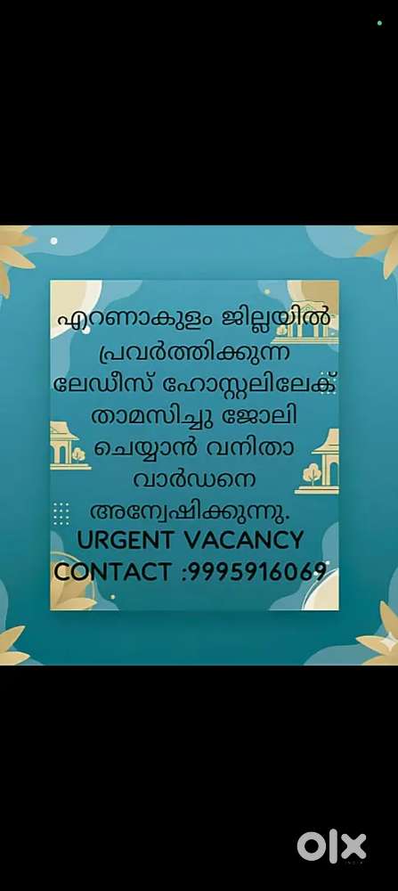 - ₹ 13000 - 15000 | MonthlyHostel warden with cookErnakulam HPO, KochiToday
