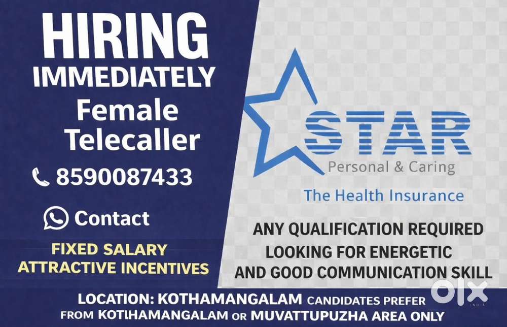 - Female Telecaller – Star Health InsuranceThankalam, Kothamangalam18 Dec