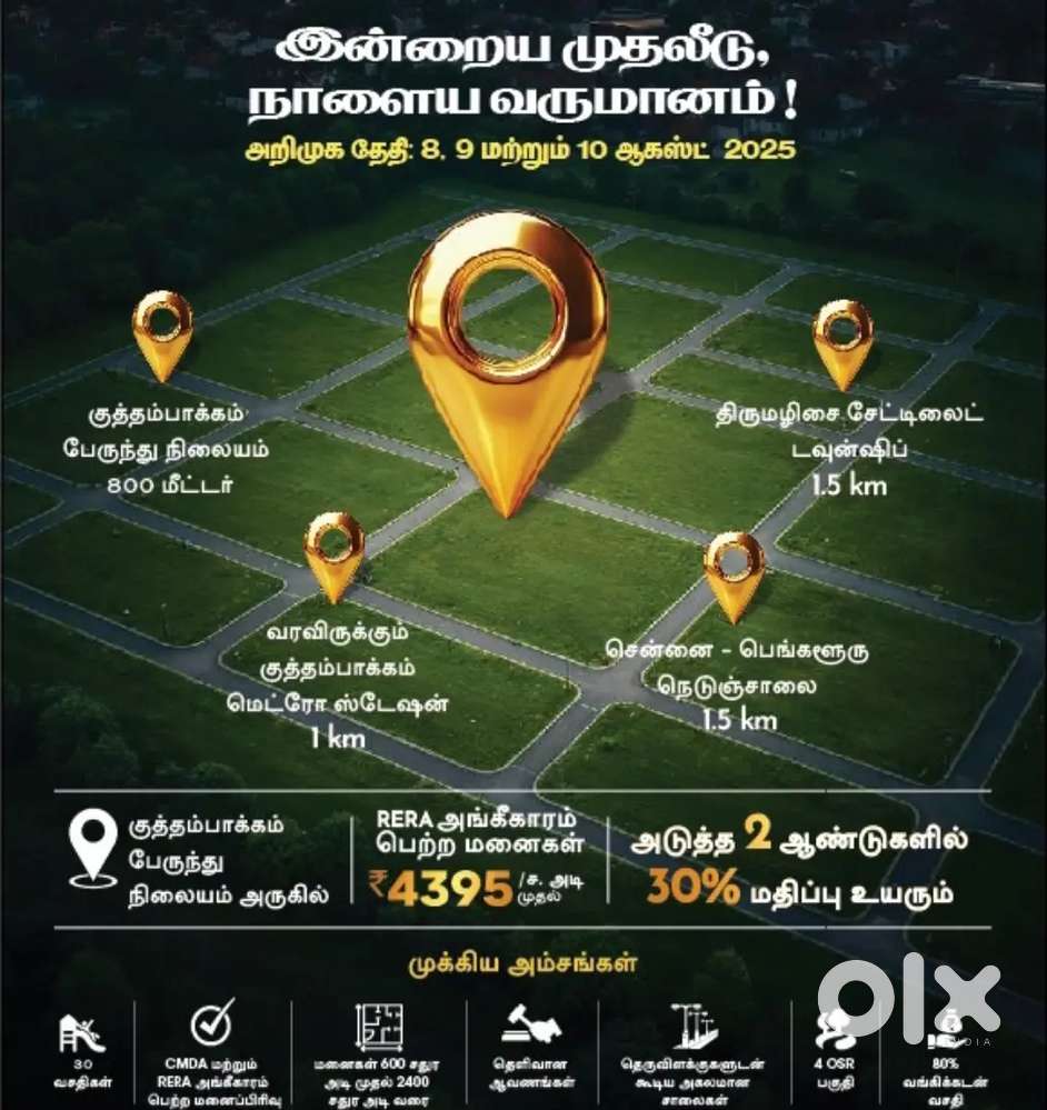 - ₹ 46,50,256#Affordable Price Plots Sale @ Poonamallee#Poonamallee, ChennaiYesterday