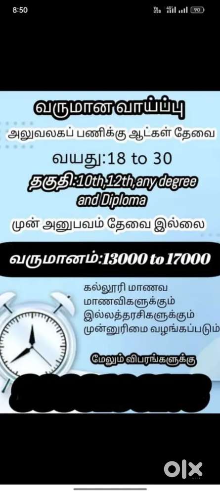 - ₹ 22000 - 36000 | MonthlyWORK OPPORTUNITY FOR OFFICE WORK MALE & FEMALENehru Market, Kumbakonam21 Nov