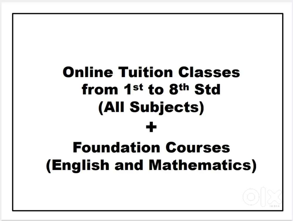 - Foundation + Online Tuition Classes from 1st to 8th Std .Panangad, Kochi18 Dec