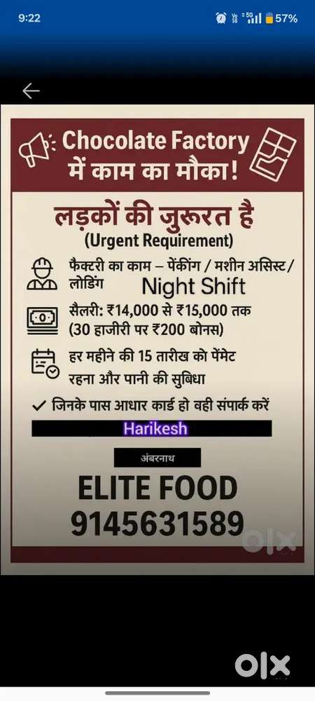 - ₹ 14000 - 15000 | MonthlyLollipop chocolate paiking jobUlhasnagar, ThaneToday