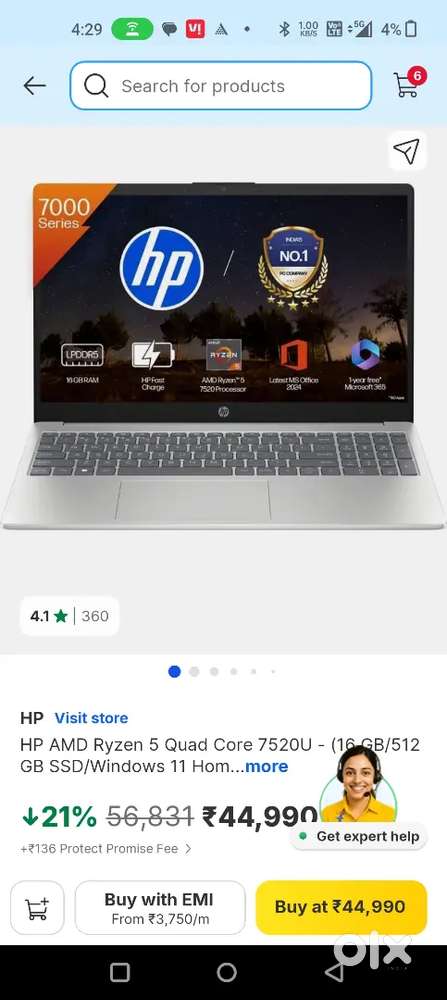 - ₹ 41,500HP 15, AMD Ryzen 5 7520U,(16GB DDR5, 512GB SSDVrindavan Yojna, LucknowToday
