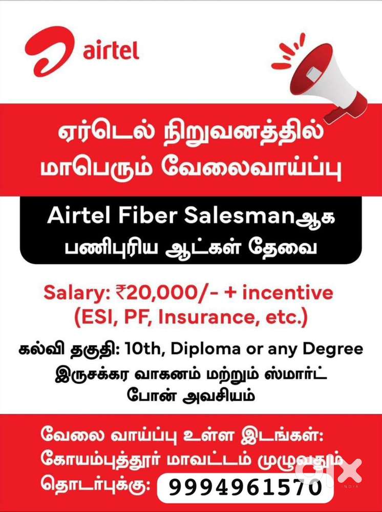 - ₹ 15500 - 18000 | MonthlyAIRTEL STORESungam Ramanathapuram, CoimbatoreToday
