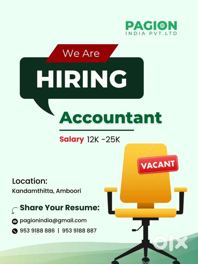 - ₹ 3000 - 15000 | MonthlyWe are hiring accountant and traineePalachira, Thiruvananthapuram7 Dec
