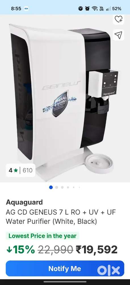 - ₹ 8,500Aquaguard Water purifierNauroji Nagar, DelhiYesterday