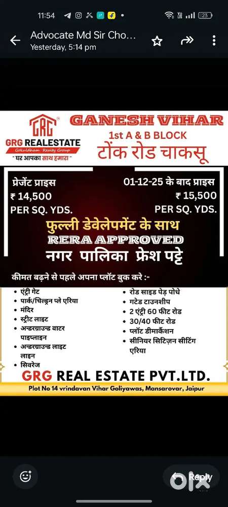 - ₹ 15,500Watika mohanpura m Society plots only in cashPratap Nagar, Jaipur22 Dec
