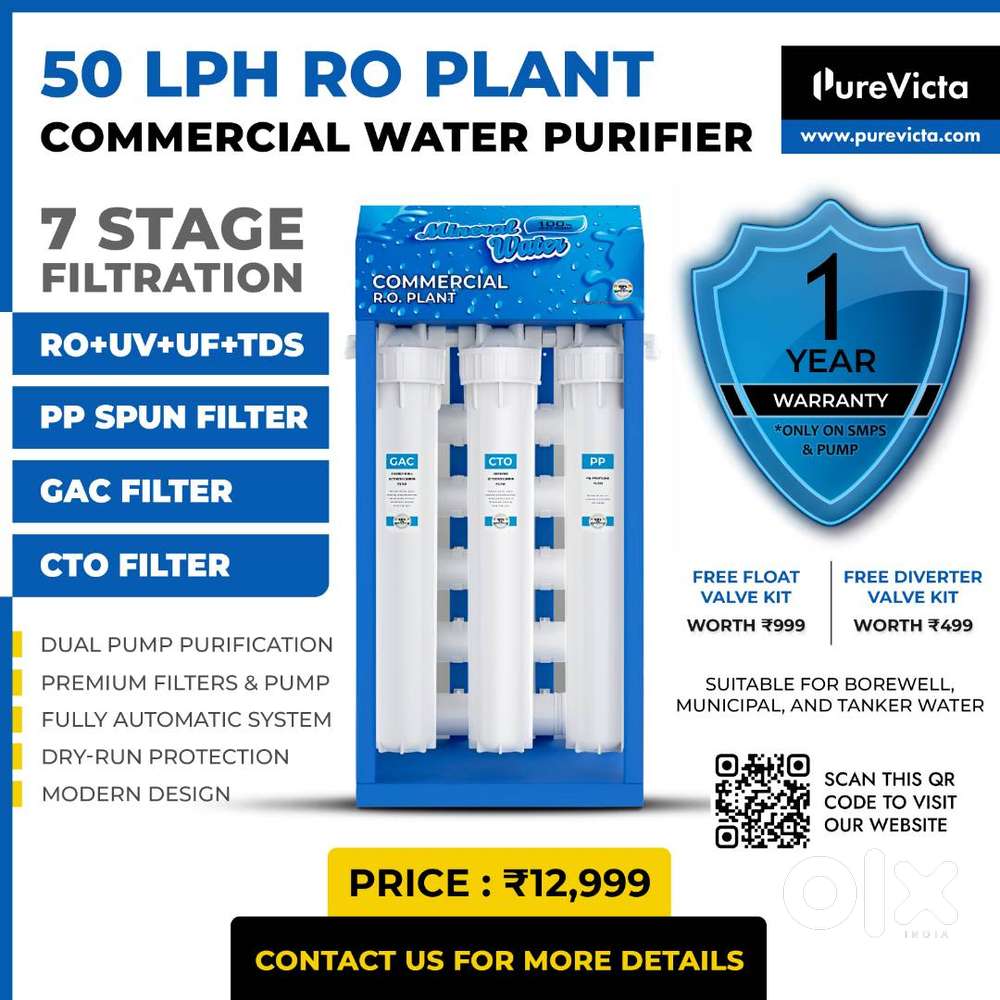 - ₹ 12,999Brand new 50LPH RO Plant 7 Stage Commercial Water Purifier FilterBandlaguda, HyderabadToday