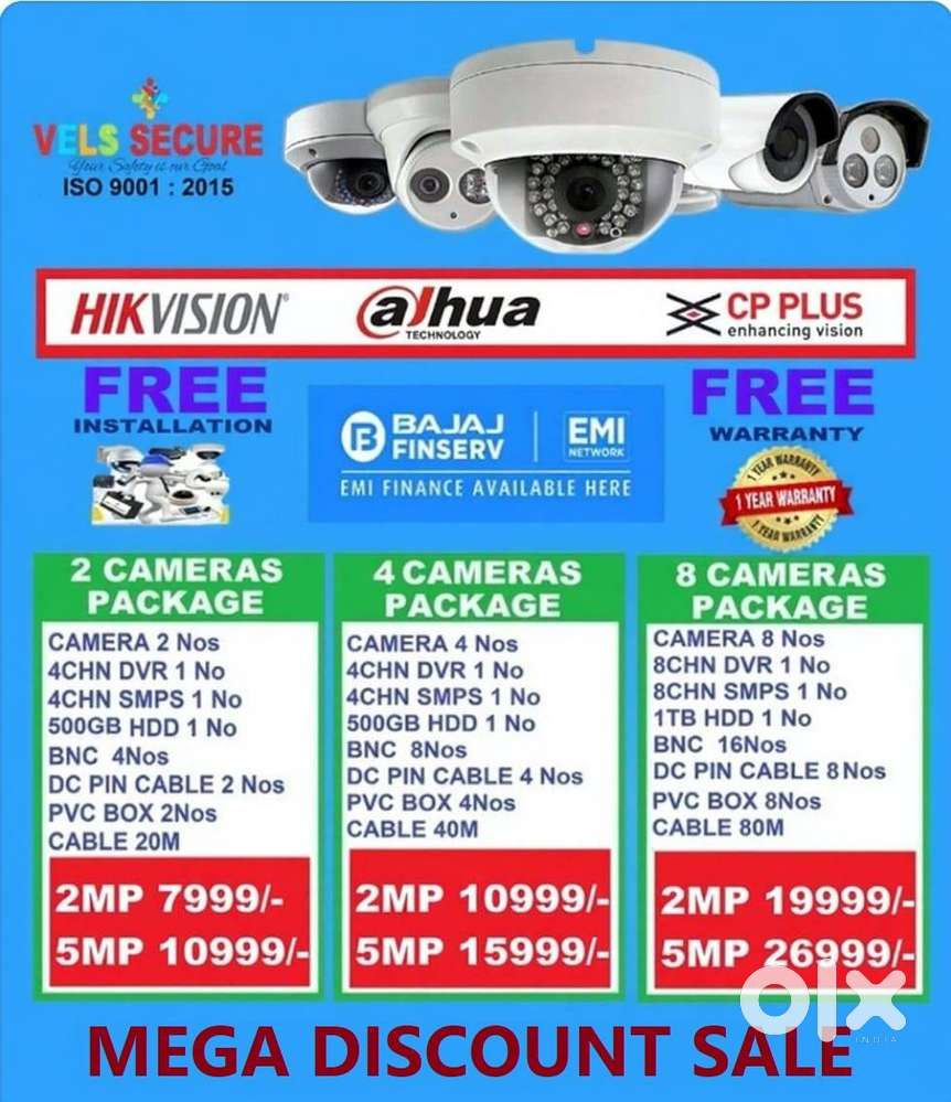 - ₹ 7,999MEGA DISCOUNT SALE OF 2MP CP PLUS or HIKVISION or DAHUA CCTV CAKovilambakkam Kovilambakkam, Chennai22 Nov