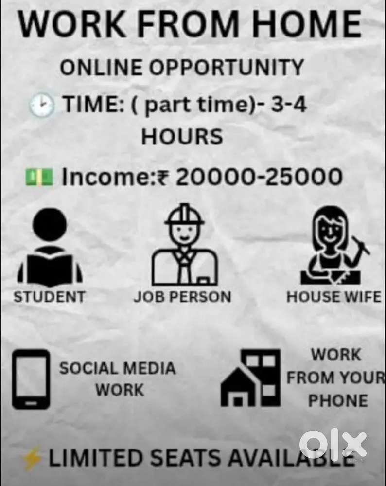 - ₹ 20000 - 25000 | Monthlywork from home for student, house wife and job personVijay Nagar, IndoreToday