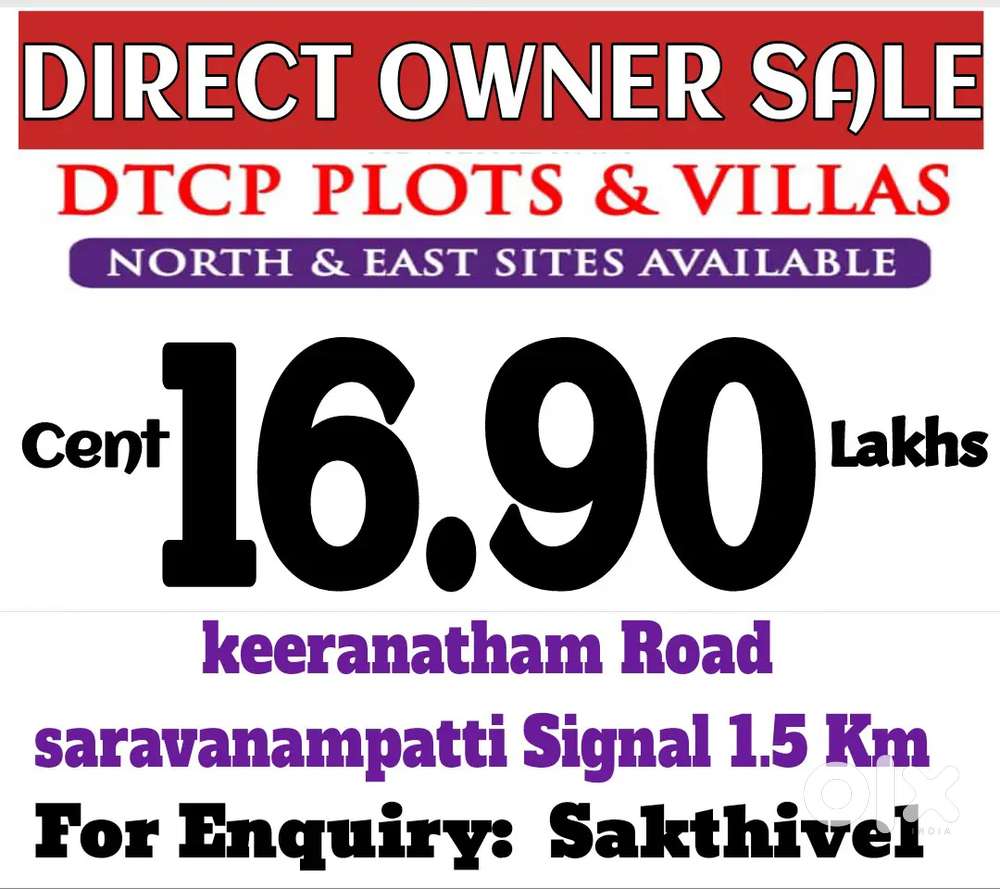 - ₹ 9,90,000Todayplots for sale by direct owner with dtcpKeeranatham, Coimbatore