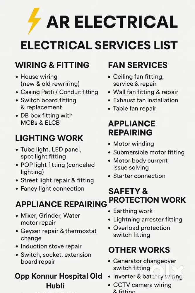 - Ar smartfix electricalsOld Hubli, Hubballi5 Dec