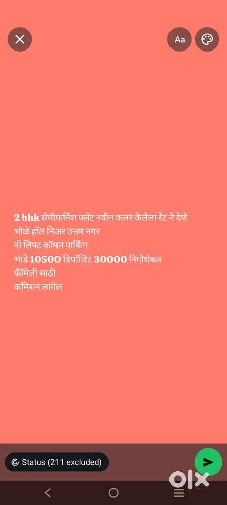 - ₹ 10,5002 BHK - 2 Bathroom - 000 sqft2 bhk फ्रेश सेमी फर्निश रेंट ने देणे भोळे हॉल निअर उत्तम नगरUttam Nagar, NashikToday